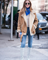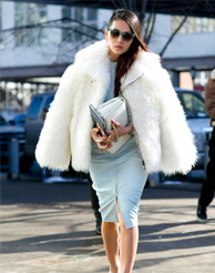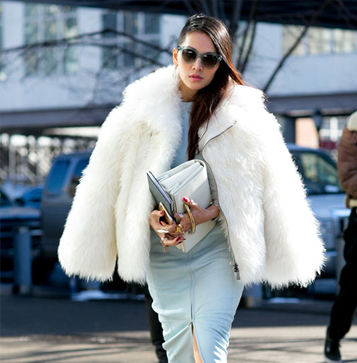 Instagram時尚伙伴關(guān)系負責(zé)人Eva Chen用簡約的粉色大衣搭配白色長款高領(lǐng)針織裙,輕松制造出層次感,絨毛裝飾的尖頭高跟鞋更具玩味。